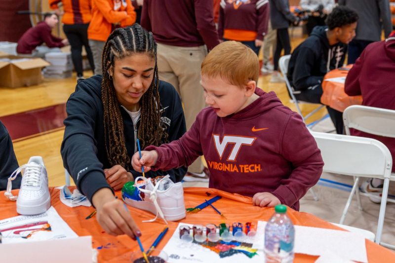 Men’s and women’s Virginia Tech (VT) basketball players recently came together with Carilion Pediatric Hematology-Oncology patients to paint sneakers. The Shoes 4 Hope tradition is in its third year, in an effort to raise awareness about pediatric cancer.