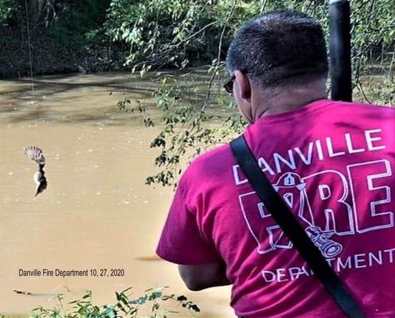 Around 12 p.m., the city’s dispatch center received a call from a concerned citizen. Walking along Danville’s River Walk Trail by the Dan River, the caller told the dispatcher about an animal in trouble.