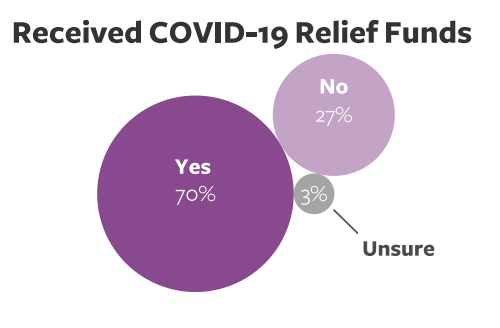 According to CNE’s survey of 247 nonprofit organizations in Virginia, 27% have not received any COVID-19 relief funds from the federal or state government. The same survey found that most of the organizations who responded had an operating budget of less than $100,000 and about six months of operating reserve funds.