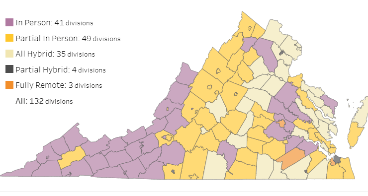 Currently, only three school districts in the Commonwealth are still remote. Those include Portsmouth, Sussex and Richmond. All but Richmond plan to reopen by the end of the month. Richmond, meanwhile, has a plan the city’s school board will vote on in the weeks to come to reopen on Sept. 8.