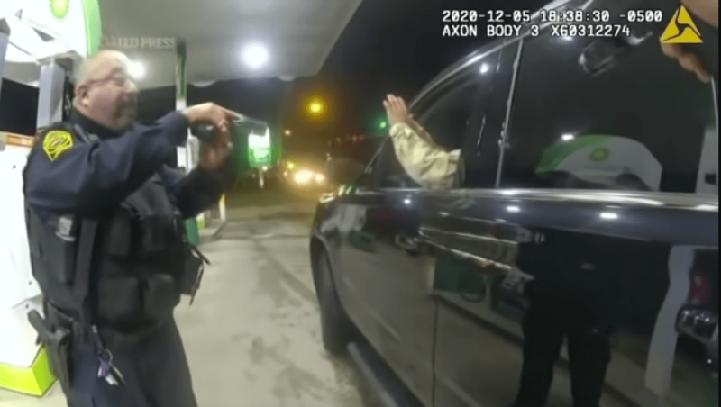 Gutierrez then tried to open the locked driver’s side door. When that failed, he tried to drag Nazario out with an armbar, again despite the locked door. Then he pulled out pepper spray and sprayed Nazario with it multiple times. The body cam video shows all of this.