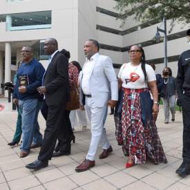 Mike Hollins, from Baton Rouge, Louisiana, was one of two survivors of a shooting last November that left three teammates dead. He was shot in the back, needed several surgeries and spent a week in the hospital before beginning a long rehabilitation.