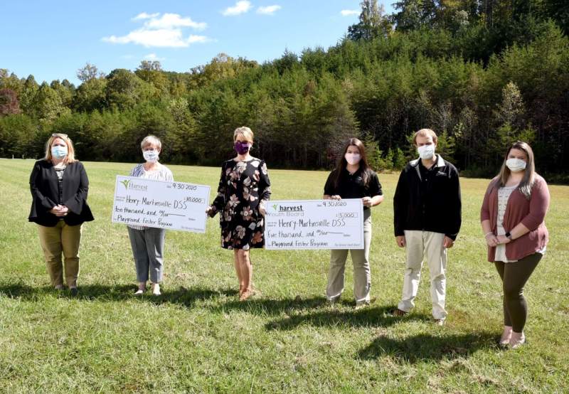 Staff of The Harvest Foundation, members of the Harvest Youth Board, and the Henry-Martinsville DSS staff are pictured on the site of the future playground which will enhance visitation for the foster care program. Pictured from left to right are Harvest Foundation President Kate Keller, Sheryl Agee, senior operating officer at Harvest, Henry-Martinsville DSS Director Amy Rice, Harvest Youth Board Members Taylor Gary, Chairman Will Gardner and Susanna Lawrence, fiscal assistant supervisor at Henry-Martinsville DSS. Contributed photo.