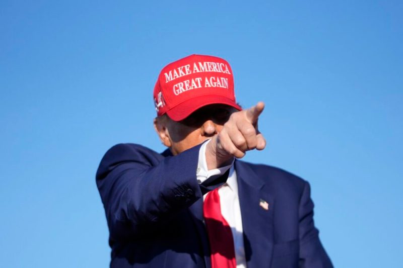 Republican presidential candidate former President Donald Trump speaks at a campaign event in Freeland, Mich., Wednesday, May 1, 2024. (AP Photo/Paul Sancya)