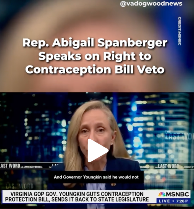 @vadogwoodnews Rep. Abigail Spanberger (D-Va.) criticized Youngkin’s refusal to sign a bill that would have given Virginians a legal right to contraception, saying the move follows the conservative playbook following the Dobbs decision. #righttocontraception #spanberger #righttocontraceptionact #contraception #righttocontraceptionlaws ♬ original sound – The Dogwood