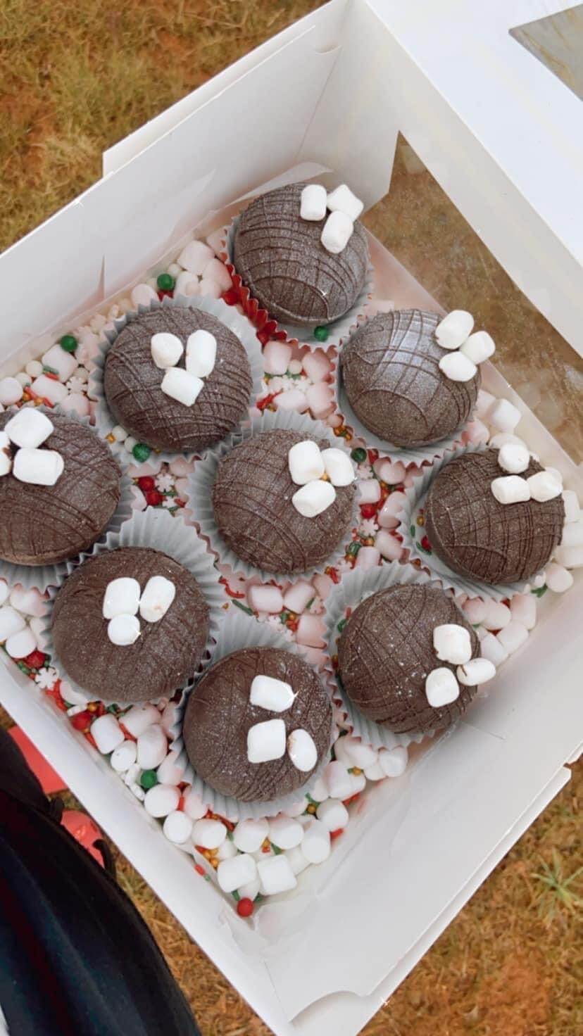 The days prior to holiday celebrations are typically the busiest time for Lowe, who operates MALicious. During the week before the event, she typically spends upwards of 20 hours baking. This year, the teen confectionist is selling cocoa bombs in addition to baked goods. The trend gained popularity on TikTok in 2020, where consumers drop a chocolate ball into a cup and pour hot milk onto it, and then watch it explode with everything from plain hot chocolate mix to marshmallows and festive sprinkles.