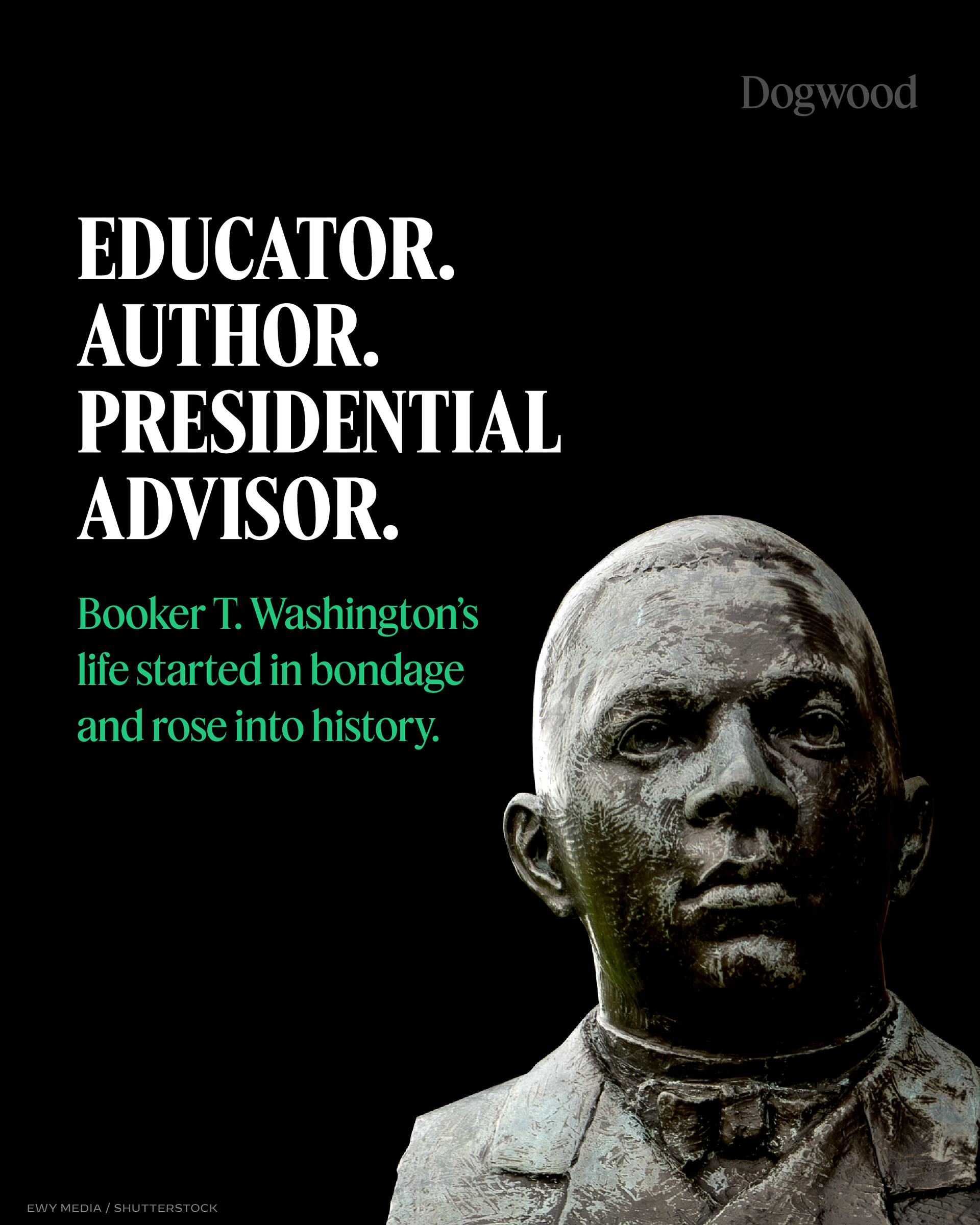 Booker T. Washington grew up enslaved on a 200+ acre tobacco plantation and lived in a small log cabin with no floor, no bed, and no glass windows.
