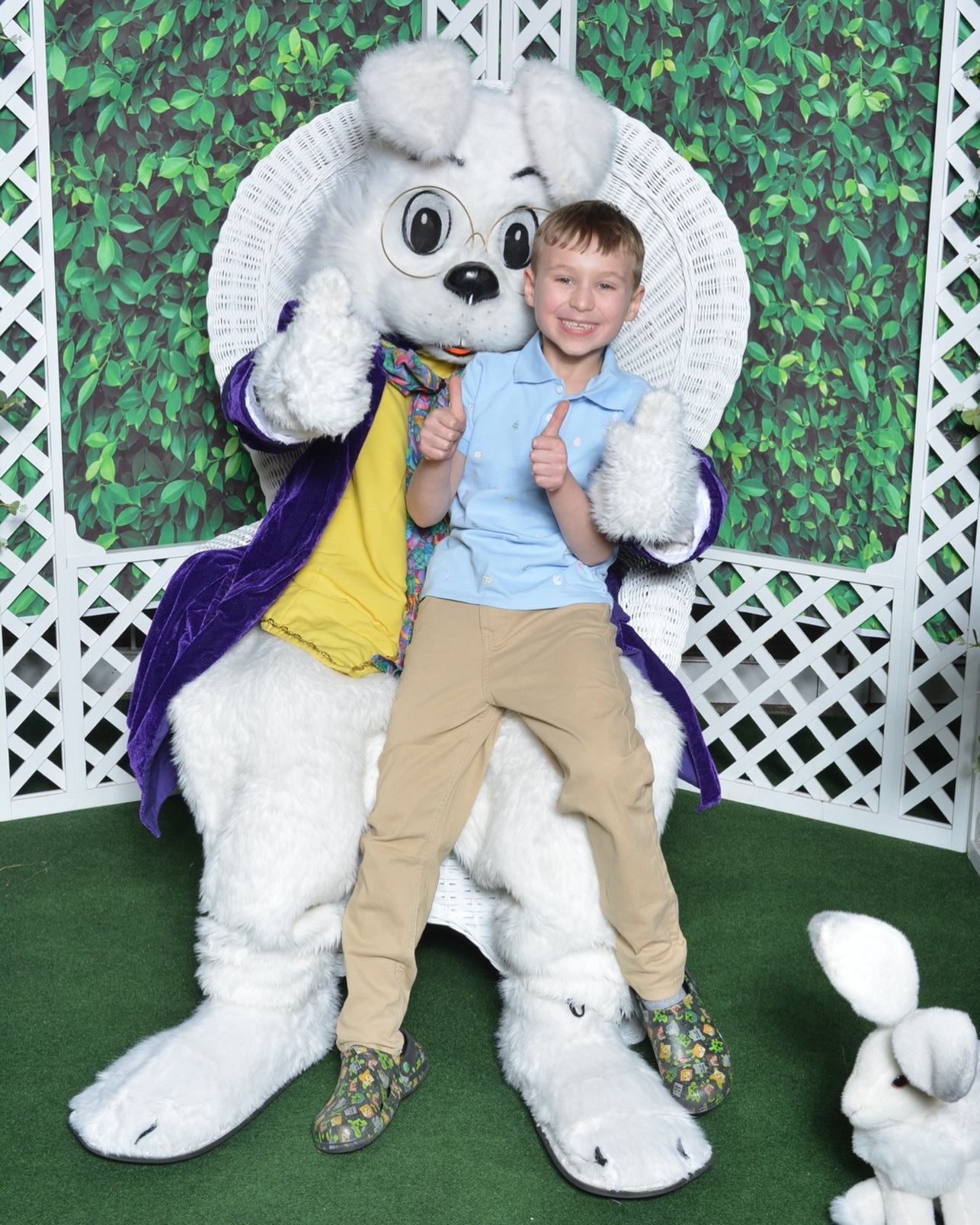 Earlier this week, we came to the startling realization that we hadn’t taken Colton to see the Easter Bunny all season. When we pitched the idea, he recoiled: “As long as you don’t take me to the same place as last year.” Well… the same place as last year was the only spot we knew of without driving at least an hour, so that’s where we went.