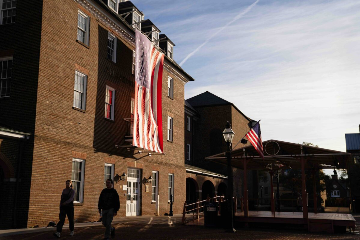 Voters outside Alexandria City Hall, Tuesday, Nov. 4, 2025, in Alexandria, Va. (AP Photo/Allison Robbert)