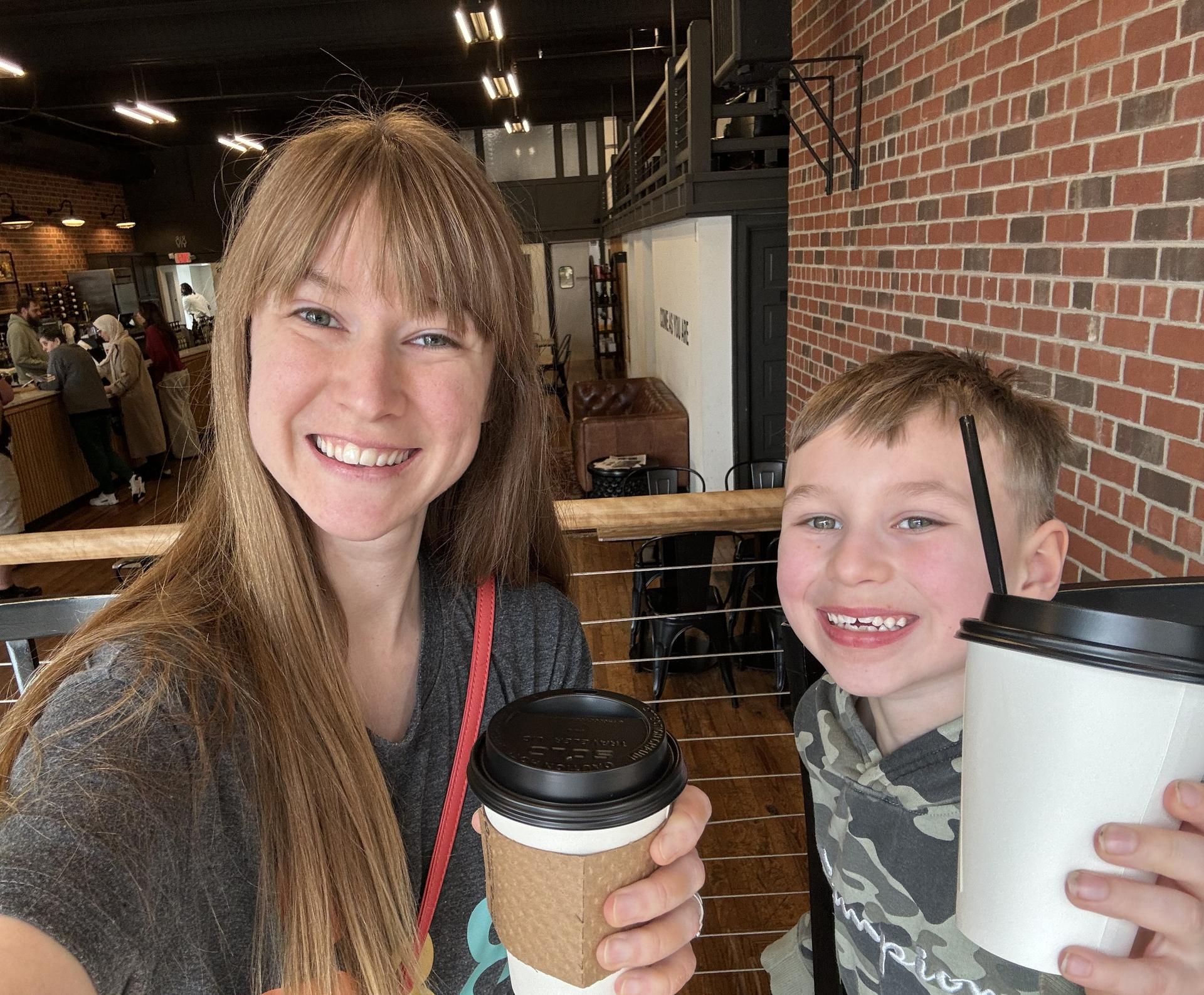 Amie and Colton Knowles enjoy hot drinks at the Ground Floor in Martinsville. (Amie Knowles/Dogwood)