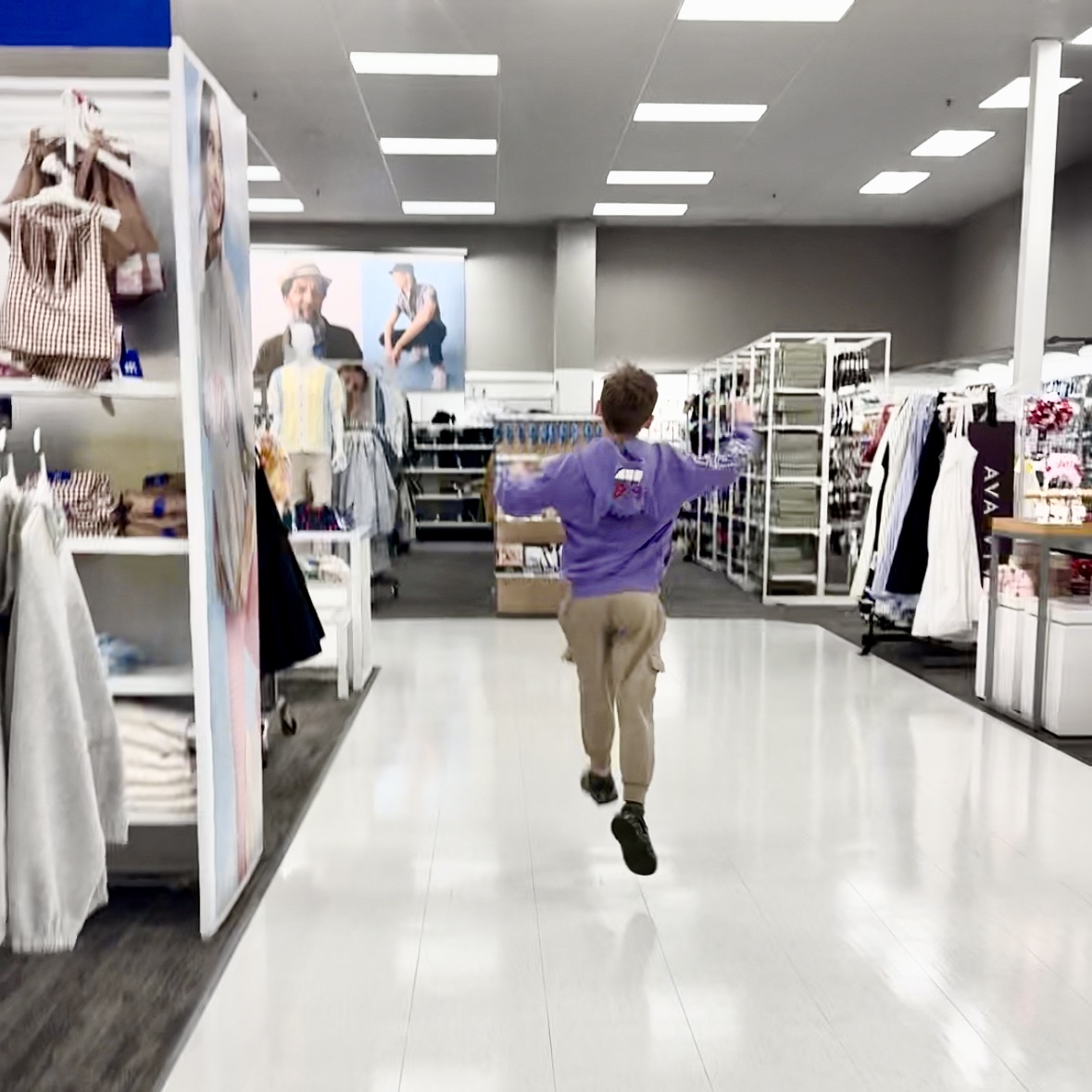 Colton Knowles jumps for joy in Target. (Amie Knowles/Dogwood)