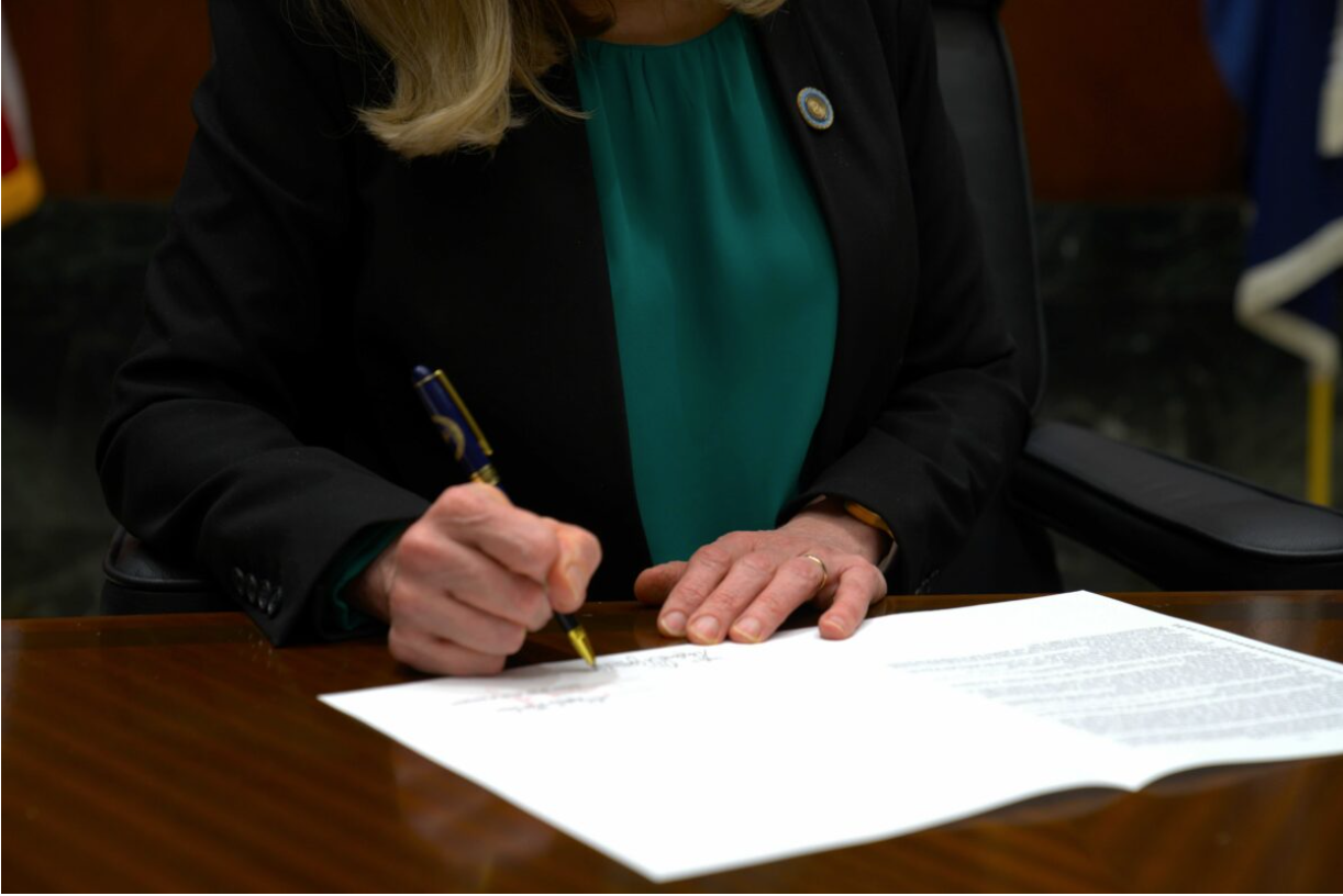 Gov. Abigail Spanberger signing legislation. (Office of Gov. Abigail Spanberger)