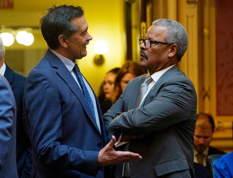 Virginia House of Delegates minority leader, Del. Terry Kilgore, R-Lee, left, speaks with Del. Luke Torian, D-Prince William, during the opening of the 2026 session of the Virginia General Assembly at the Capitol Wednesday Jan. 14, 2026, in Richmond, Va. (AP Photo/Steve Helber)
